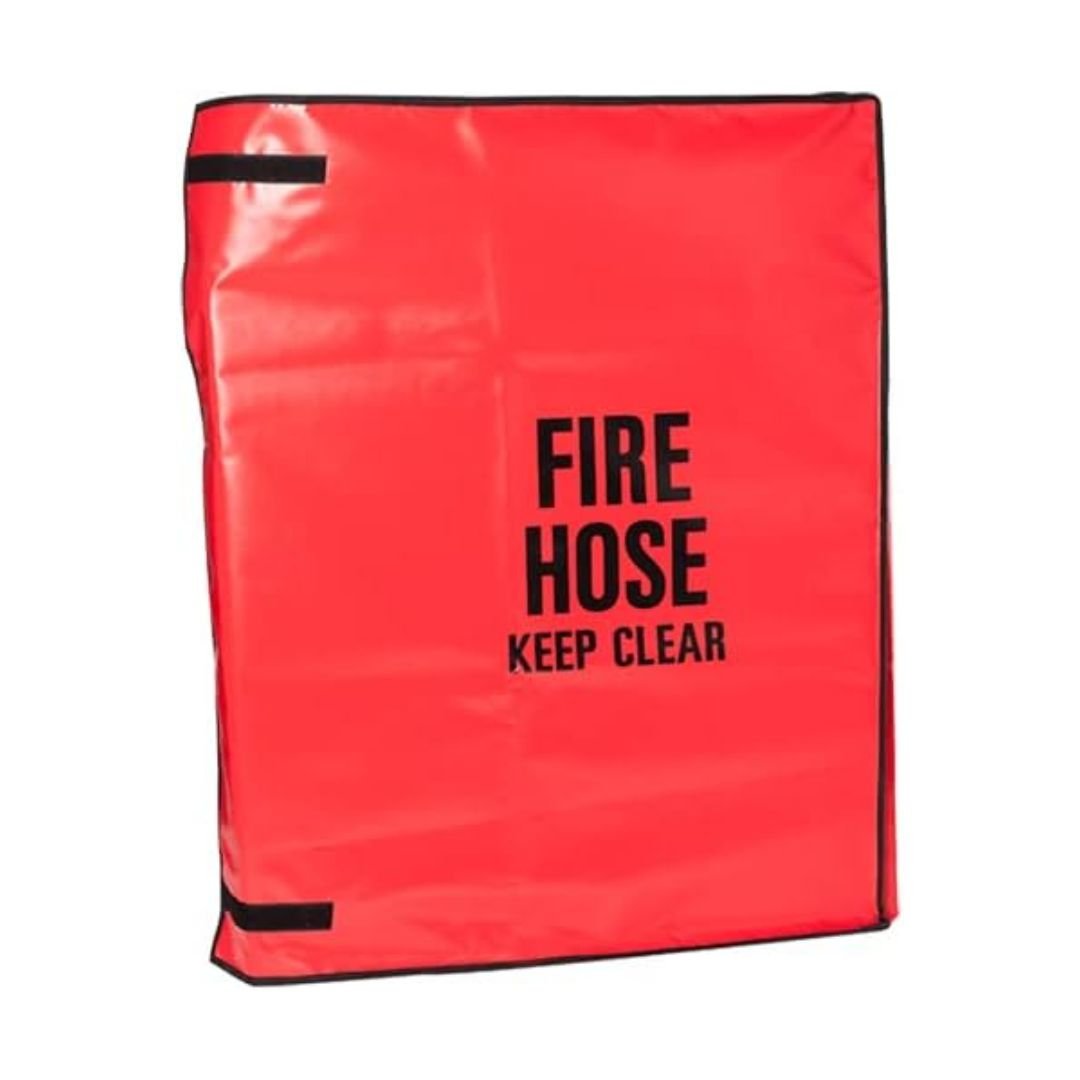 Protect your fire hose with this durable vinyl cover, designed for fire hoses assembled on a swing pin racks. The cover features clear, bold stenciling on both sides that reads: “FIRE HOSE KEEP CLEAR” on a Bright Fluorescent Red surface. Ensuring visibility and compliance with safety standards. Equipped with a convenient Automotive Grade 3M velcro fastener, this cover securely protects your fire hose from dust, dirt, and damage while keeping it accessible & visible for emergency use. Ideal for commercial buildings, schools, and industrial settings.